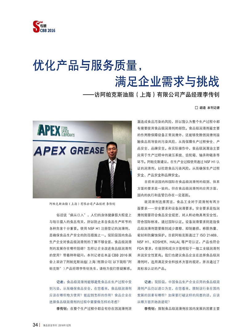 q期国际知名杂志《亚z食品与饮料》对阿帕克斯q行?jin)专访报道,食品润?..