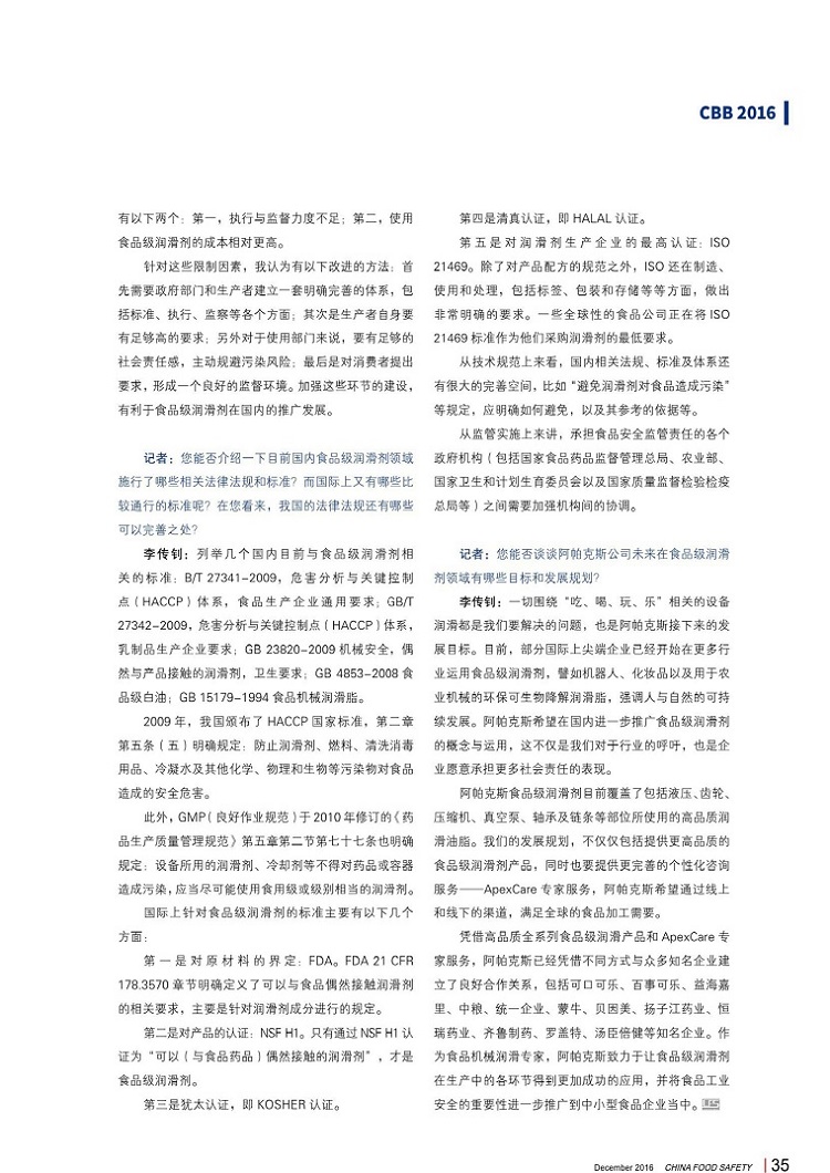 日前Q阿帕克斯品经理李传钊先生接受?jin)《食品安全导刊》的采访Q就食品U润滑剂的一pd问题?sh)?jin)详细专业的解{?/span>
